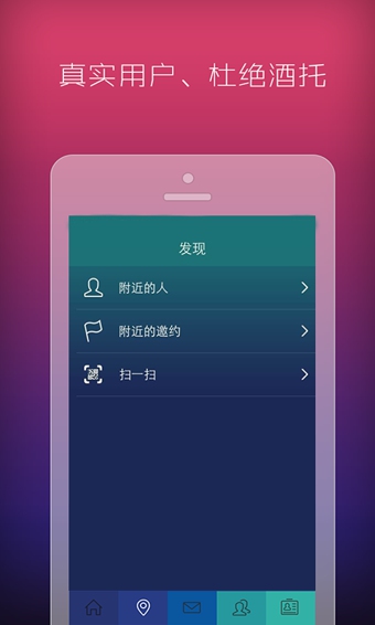 附近的人:约你严格审核注册者身份,提供更多的用户资料便于您了解您附近的人。聊得来可直接加好友。对于某些用户色情的话语及图片您可以直接拉黑ta。