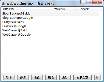 WebWatcher是一款网页监视工具,可用来提取网页中指定的关键字。 支持使用正则表达式提取内容 支持多个网页的同时监视 整个软件操作简单、容易上手 绿色软件,无需安装,不写注册表,可存放在U盘执行