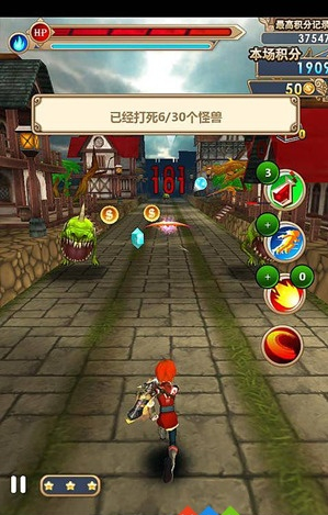 游戏的操作比较简单,和传统的跑酷游戏一样采用左右滑动屏幕来走位,当然也有上下滑动来跳跃,这是最基本的竖版跑酷操作,相信很多玩家都有所熟悉。游戏中虽然我们遇到怪物之后会攻击它们,但是这种攻击是由系统控制的自动攻击,我们只需要控制好走位即可,从这一点上来看,虽然游戏精彩了很多,但是却依然很方便。