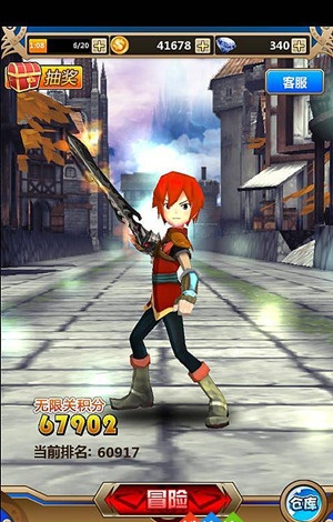 系统为我们准备了三种人物选择,分别是一位萌战士、小萝莉、以及一位御姐,三个各具特色的人物几乎囊括了所有玩家的需要,不管是男生或者女生,都能选择自己喜欢的人物哦。每一个人物除了样子不同之外,连自身的属性也不同,而且我们还可以对他们进行强化和装备武器,利用ARPG元素来增强自身的实力,让玩家们获得更好的跑酷体验。