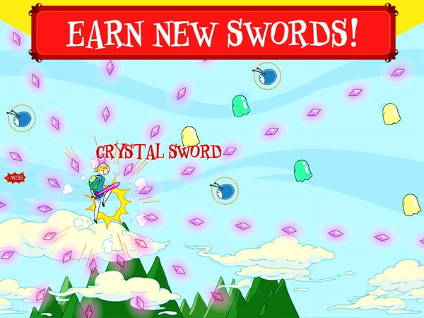 《宝妹闯江湖 - 冒险时间 Fionna Fights - Adventure Time》是一款动作游戏,宝妹、皮姐与马歇尔受邀前往肿泡泡王子所举办的派对,没想到路上却遭到一大群怪物的围殴,因此三人不得已也就只好挺身应战。正式开始游戏后,在屏幕的右上角有类似我方生命值的能量计量表,在这里场景中会不断飞出各式小妖精、蝴蝶甚至飞天汉堡等等奇形怪状的幻想魔怪,只要魔怪顺利飞过防线到达画面的左侧就会减去一定数值,一但归零则游戏就会结束而结算积分。因此玩家就要直接用手指点击画面,让宝妹依照指示,像《音速小子》的空中锁定攻击一样,在半空中持剑冲刺指定位置敌兵,不使敌人横越雷池一步!