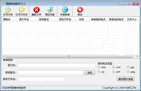 图像转换能手 1.1 绿色版 图像转换软件是一款绿色免费的图片转换工具,简单容易上手,快速又便捷。ico,bmp,jpg,wmf,emf格式的都能实现批量快速转换,图片处理必备软件之一。简单的操作,简洁的界面,清晰明了的功能,让这软件更加受人欢迎。