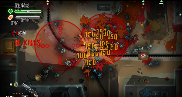 除了血量这样的基本属性,玩家还有怒气值这样的属性,消耗怒气可以让玩家变成一把旋转的电锯切碎源源不断的丧尸。