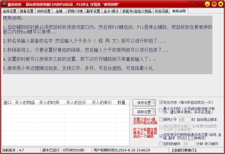 1、游戏分辨率设置:800*6002、先开游戏,鼠标放到游戏画面,按F10启动,F11全部停止
