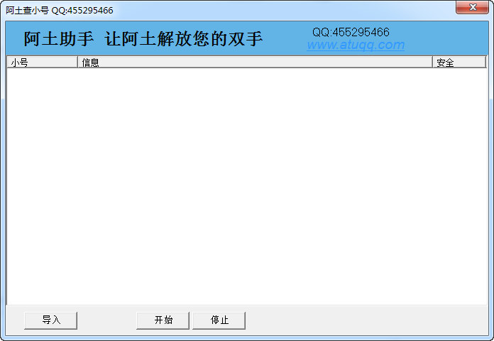 阿土淘宝查小号是一款可以批量查询淘宝小号状态的工具,让你确认淘宝号每周每月号评是否安全,本软件为免费软件,不含任何插件,木马,希望用阿土的助手软件,解放大家的双手。