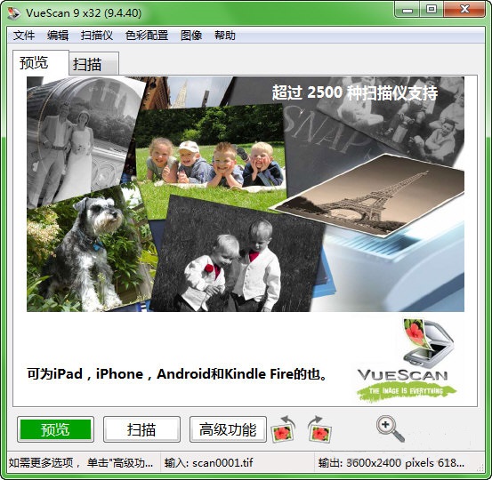 VueScan 的特性包括:支持 200 种以上的底片类型,在剪取图像时制成关联单,复杂的白色平衡算法,用于检查物体表面暇疵的红外线底片扫描,成批扫描,自动剪取图像,等等[底片扫描仪驱动]