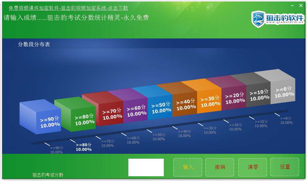美轮美奂3D成绩分段图标:拥有自主知识产权的精美3D立体透视柱状图,基于GDIPLUS的实时渲染,将成绩截图展示更有档次!