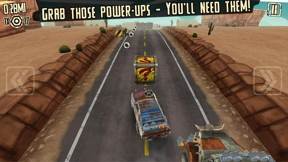 疯狂道路跑酷 Mad Road Driver是一款赛车题材跑酷游戏,荒凉的戈壁风景,尽显异域风情。简单的游戏操作,只需玩家触屏点击左右方向键即可控制赛车左右躲避各种来历不明的障碍物。在行驶的过程中,你需要绕过障碍物,收集大量轮胎,来解锁更多的东西。还有丰富的道具助你一臂之力哦。游戏画风不错,只是玩法略微有些单调。【道具大全】