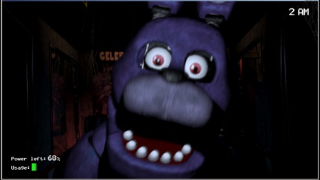 开发者在环境上下足了功夫,闪着雪花的监视屏、明暗交替的房灯、开关门的光线差异,这些都是标准的恐怖元素,在互相配合之下,为游戏构建出阴冷、渗人的环境观感。至于尖叫诱导元素,本作企图通过一种电影化的语言来展现,以缓慢的镜头感带领玩家慢慢进入到剧情,简而言之,游戏的节奏偏慢,就像时光停滞,但当玩具熊突然蹦跶出的,尖叫声也就自然而然,达到了惊吓的目的。要想在这里生存下去并没有那么简单,一群本来用作吸引孩子的动物机器人在夜晚全部变成了致命的杀手,它们会想尽一切办法夺去你的性命。你被困在了自己的保安室里,要通过监控摄像头来查清弗雷迪和帮凶们的行踪。如果把摄像头从它们身上移开,它们就会慢慢靠近你的办公室,当你发现它们靠得非常近时,你可以通过关闭安全门来摆脱危险。不过,整栋建筑里的电量有限,你根本不能一直盯着这些杀手们,很明显,你的雇主并不想给你支付任何薪水……