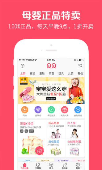 贝贝特卖是一款生活购物软件,这款软件以品牌正品、独家折扣、限时抢购为特色,致力于整合国内外最优质的孕婴童品牌供应商,打造妈妈宝贝专属的一站式购物平台。【软件特色】