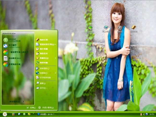 放飞心情电脑主题是一款小清新风格的xp电脑主题,这款电脑主题的桌面背景是一个非常漂亮的妹子靠在满是爬山虎的围墙上,然后衬托绿色的植物,让人感觉很清爽。