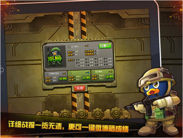 8、晒晒你的战绩:结算界面包含你的杀敌统计以及攻防指数,可以一键分享到你的微博,向大家晒晒你的成绩!