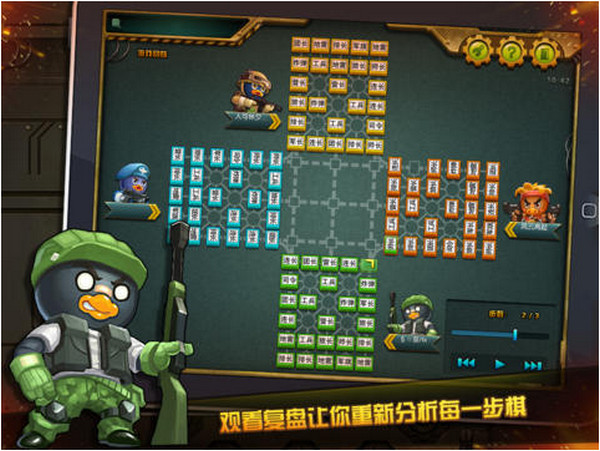 1、严肃而又华丽的游戏风格:与四国军棋充分契合的军事风格,让您沉浸于四国军棋的对局中无法自拔。2、方便快速的操控方法:直接点击棋子移动,在iPad的大屏幕下操作轻松顺畅。