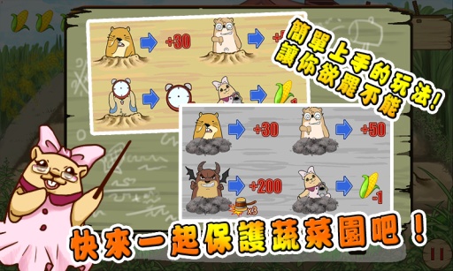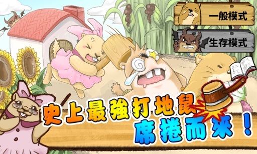 1.普通模式:抢时间!抢高分!在有限的时间与生命底下!训练你的眼力与速度!来获得最高分吧!2.生存模式:千万别让邪恶地鼠逃走了!连击三下邪恶地鼠才能将他击败,并获得邪恶地鼠给的高分!在无限时间下衝高你的分数吧!
