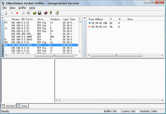 EtherDetect V1.4 英文绿色特别版 EtherDetect Packet Sniffer 是一个容易使用和获奖的包嗅探器及网络协议分析器,提供面向连接的显示视图方式便于更有效地对数据包进行分析。用户在使用时所需要做的全部工作就是设置相应的过滤器;启动捕获以及即时查看获得的连接、数据包和数据等信息。包含注册机