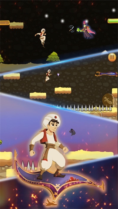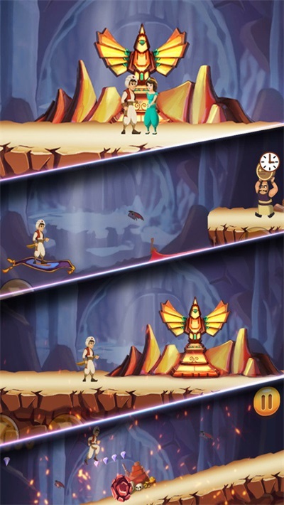 4、充满趣味的剧情故事:在游戏中,剧情故事妙趣横生,玩家会携手阿拉丁踏上冒险征程,助力他营救自己的爱人。