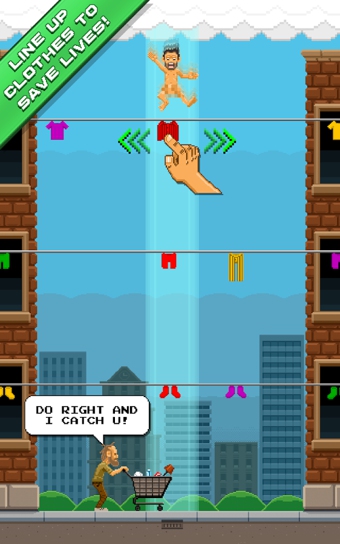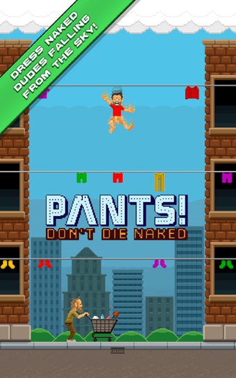 《穿衣死 Pants!》是一款搞笑的休闲游戏,已经跳楼了,但是突然发现这时没穿衣服,但又不像裸死!怎么办!这个时候不要慌张!楼顶天台到地面还是有一段距离的!而且,楼宇之间还放着那么多晾晒的衣服,挑几件你喜欢的,或是摩登范儿,或是街头潮搭,总有一款适合你。等你都穿戴整齐了,那么恭喜你,哥们,你可以上路啊!哎~当你达到地面时候,发现自己还活着,那感觉,老爽了!!!当然,有时候也会有事故发生呦!玩家还是自求多福吧!对了,这可是连续跳呦,别以为穿了一个就完事了呦!!