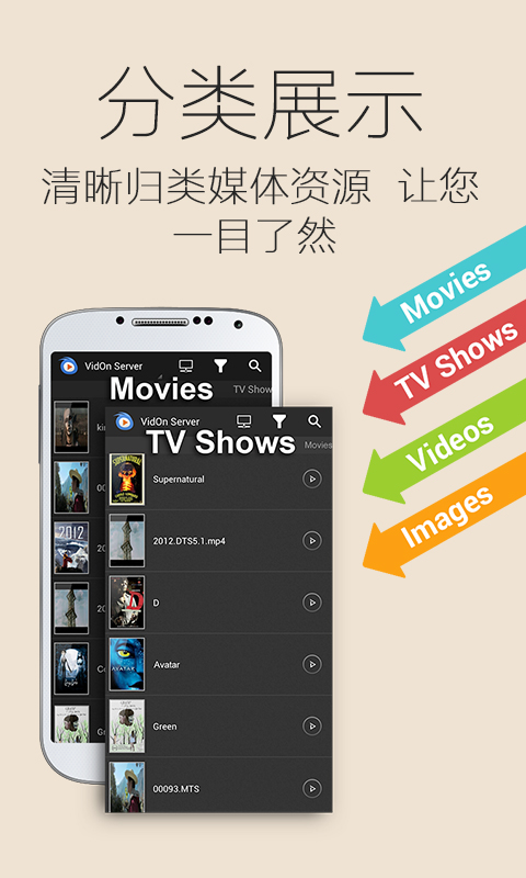 - 用户可以在Server上添加任何格式的影片、视频、甚至是蓝光iso文件。手机端可以轻松播放。