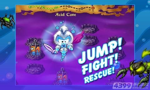游戏的画面效果非常可爱,操作上也轻松无比,本作并没有设置任何的固定按键,大家只需要在人物的上下左右方向点击屏幕即可控制它向那个方向跳跃。随机性非常强的操作方式让玩家不会因为长时间的固定手势而手指僵硬,自由在屏幕中人物周围点击也要注意,本作是以人物为中心,而不是以屏幕为中心,所以可不要点错方向了。
