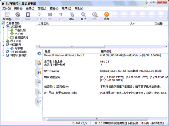 比特精灵是一款完全免费、高速稳定、功能强大、不包含广告的BT下载软件。自发布以来以其稳定高速,功能强大,使用人性化的特点,日益受到广大用户的青睐。比特精灵在老版本完成了性能上的飞跃之后,在新版本又做了很多细节上的完善和调整,性能进一步提高,程序更加规范和成熟。