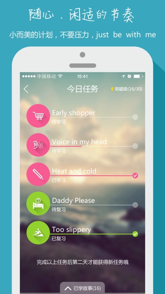 更有各种贴心:离线使用,不用流量;解锁模式,节节升级;一键回顾,自动连播;合理复习,长效记忆。