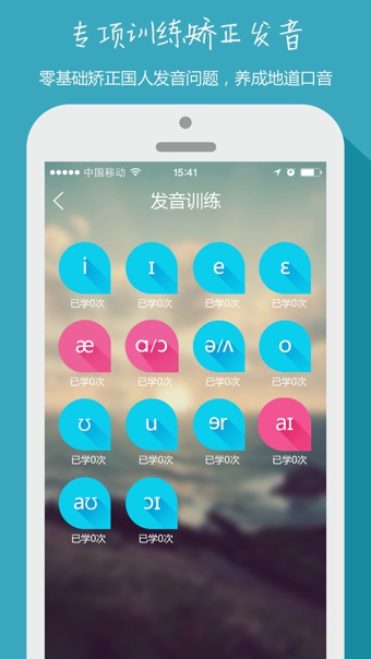 国际成熟的语音评测系统,纠正并固化发音,更有中国人易混淆的英语音标发音辨析,使得听力和口语很短时间就有质的提高。