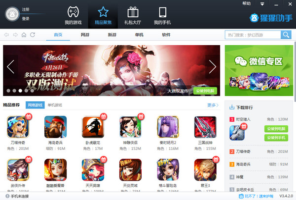 1、下载猩猩助手并安装2、第一次打开需要下载模拟器,仅此一次,若杀毒软件阻止,请允许通过(切记)。