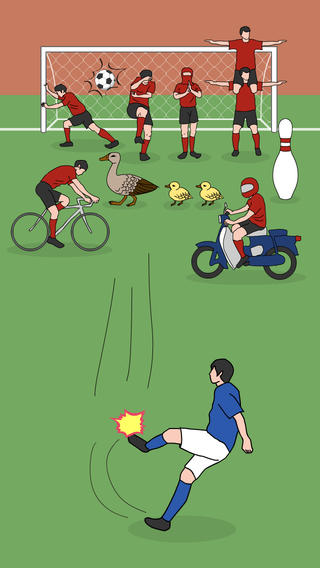 奇怪的任意球:坑爹游戏年年有,今年特别多!现在又出了一款,这款游戏玩家只要发球控制球的方向,让球进球门就好。但坑爹的是,球门守卫员会摆出各式各样的姿势来守卫球门,甚至,还有在球场埋设地雷的呢!且看你如何破门。