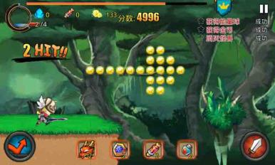 游戏在操作上的表现和最新更新的天天酷跑有些类似,都是只有跳跃和攻击按键两个而已,对于大多数玩家而言,左边跳跃与右边攻击都是很熟悉的操作方法,基本不用怎么练习就能直接上手。本作在操作上算是非常简单的,除了基本的两个按键之外,还有一些小的功能按键在中间,也很方便玩家的选择,只不过唯一的缺憾就是攻击的时候人物仿佛慢了半拍一样怪怪的。
