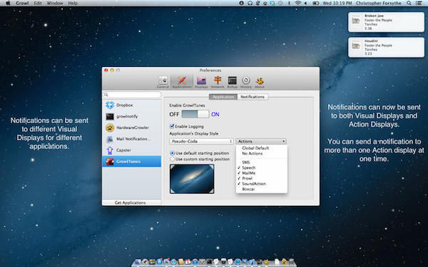 6、从Cocoa、AppleScript、网络都能给Growl发送通知。