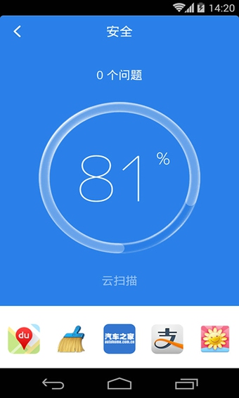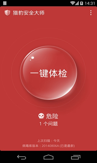猎豹安全大师是猎豹移动公司出品的手机安全软件。轻快,扫描速度快,内存占用少。安全,内置AV-TEST全球第一的杀毒引擎,全面查杀 Android 手机和平板设备上的病毒、木马、恶意广告和恶意窃取隐私的应用。【功能特点】