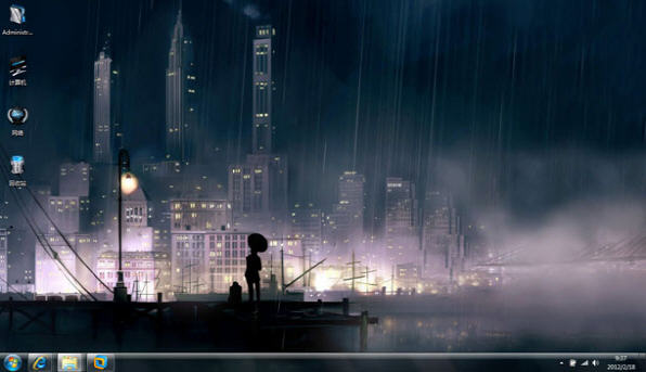 雨幕下win7主题桌面图标效果图