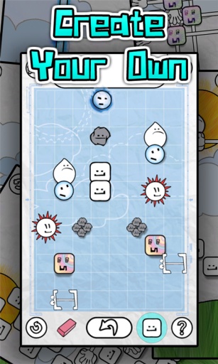 游戏界面为涂鸦风格,里面一共8种不同造型的砖块,每种有不同的魔法属性,让游戏具有极高的耐玩性。在游戏里面,如果哪一步错了可以进行单步取消。