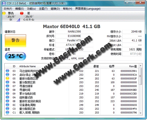 CrystalDiskInfo(硬盘检测工具) V4.0.1 多语绿色免费版 CrystalDiskInfo是一件简单实用、超凡脱俗的硬盘检测工具,该软件可以显示电脑硬盘的详细信息,包括接口、转速、温度、使用时间等。该电脑硬盘检测工具还会根据S.M.A.R.T的评分做出评估,当硬盘快要损坏时还会发出警报,支持简体中文,推荐一试。