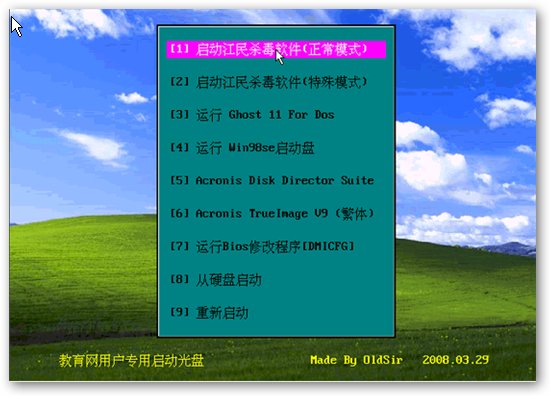 新版病毒库dos杀毒光盘启动。 光盘启动后江民杀毒的病毒库就是2008.03.29的。