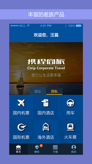 作为业内首个能够真正实现无线预订、支付及授权的商旅管理产品,“携程企业商旅”手机客户端全方位支持各种商务差旅预订需求,助您随手掌握商务旅程!