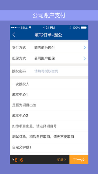支付方式:不同产品可选择公司账户支付、信用卡支付、礼品卡支付或前台现付等方式。