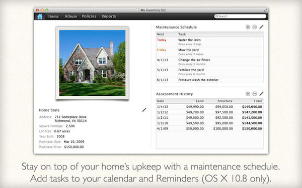 【1】如果你有一个iPhone或ipad或者iPod-touch照相机功能,您可以使用免费的辅助应用,国内库存图片远程,连接到首页库存在你的WiFi网络,在您的家庭和建立你的库存。该软件包括一个内置的条码扫描器快速添加书籍,CD,DVD和其他物品的条形码库存。条码查找可用的产品在美国,英国,加拿大,德国,法国,日本只。【2】呆在你家的保养与日常任务,如清洗水槽和通气草坪维护日程安排。如果您运行的是OS X 10.8(狮子),你可以添加任务日历和提醒。