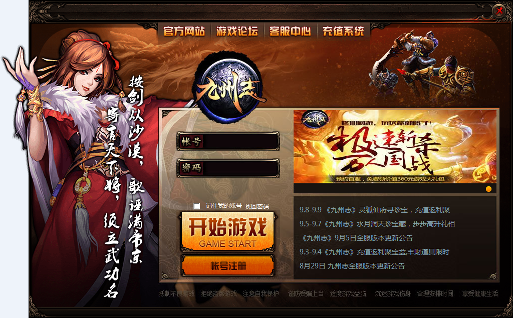 360九州志是一款即时战斗的角色扮演类网页游戏,游戏主要以修仙为主线展开,主打全新国战玩法,在以国家成长为终极目标的前提下,突破玩家自身桎梏,飞升成仙成为三界霸主!【游戏特点】