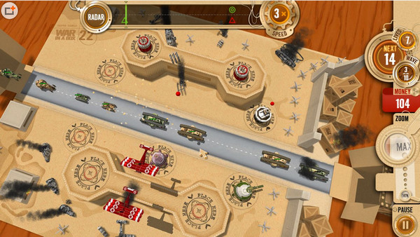 由于各类武器的特点不同,玩家需要对火力进行合理搭配,在敌方目标进入我方前击毁对方。