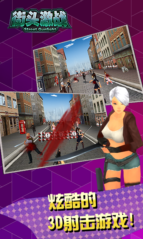 1、游戏主要以欧美街头枪战题材为背景。清晰画面;2、简单的游戏操作,主要以点击屏幕的方式来进行操作;