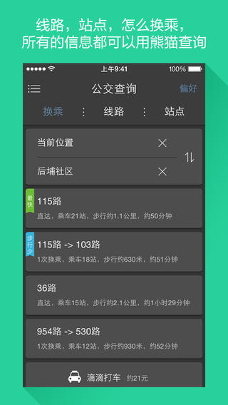 根据您的喜好选择“换乘少”“步行少”等出行方案,