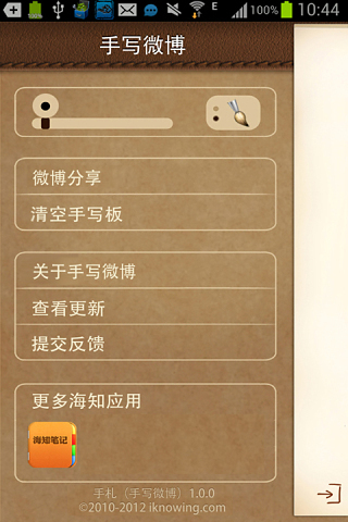 1.海知团队强力打造的“手札”三部曲——手札(手写微博),是一款专注于微博分享的手写输入软件。2.你可以轻松的用手指在手机上记录信息并通过新浪微博转发的形式,把你的真迹分享给你的好友。