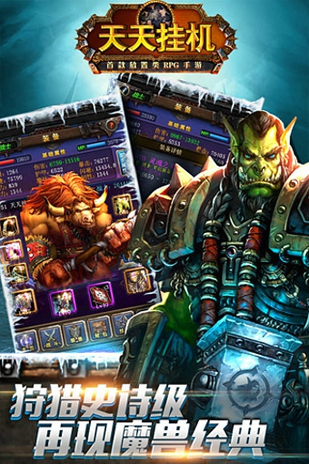 如果你渴望拿到极品装备,却又不想花费大量时间精力在游戏中,你就会喜欢《天天挂机》!如果你渴望快速升级,却又不想花费大量时间在游戏中操作,你就会喜欢《天天挂机》!如果你渴望一边玩游戏一边各种聊天刷屏,却又怕因为聊天错过了打BOSS的好时机,你就一定会喜欢《天天挂机》!《天天挂机》里,不需要手快,不需要脑快,甚至不需要好记性,只要挂上,几小时之后,你的背包里就会多出好多装备,既可以装备上,又可以卖掉换金币。一睁眼,一闭眼,你的英雄就会飞升好几级,升级后的英雄又可以挂更高级的怪物、获得更高级的装备!