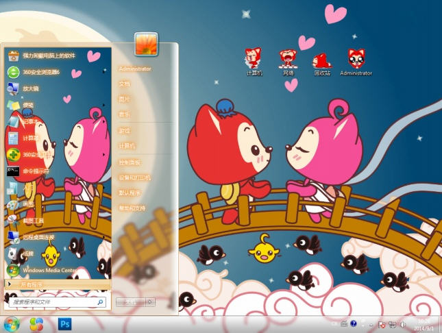 阿狸桃子电脑主题:阿狸是网络的大红人,相信大家都认识,他可爱天真善良,被许许多多的年轻人甚至是小朋友都爱在心头。,而他跟桃子的爱情我们都看在眼里,都很祝福他们。现在推出这款win7电脑主题,有喜欢阿狸桃子的朋友赶快下载吧。