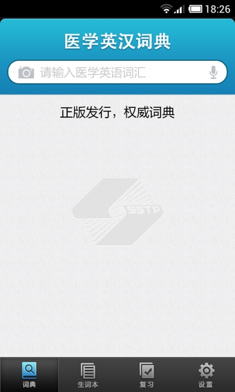 国家“资深翻译家”荣誉获得者陈维益教授主编,国内权威出版《英汉医学辞典》2009年第3版手机版同步发行。本词典初版于1984年,后经两次修订,发行量超过45万册,在医学界享有盛誉,是我国最有影响力的医学英汉词典,是一部权威、标准、精确、全面的大型医学双语词典。海词词典(中国第一个互联网词典Dict.cn)携手上海科学技术出版社官方权威正版发布,具有摄像头查词、语音查词、通知栏快捷查词等便捷查词功能,还有清晰发音、生词收藏和复习背诵等辅助学习功能。选择正版词典,学习更有保障!(版权所有,盗版必究)