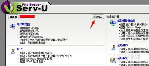2.展开Serv-U服务器,找到“域”,如果已经建立有域,可跳到建立用户;如果没有“域”则新建一个域.如下图
