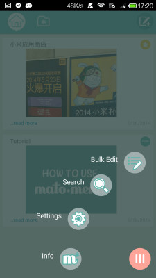 mato*memo 支持将几个保存的内容合并在一起,只要在列表中长按选中想要合并的内容,按下右上角的合并按钮,几个内容就可以快速合并在一起啦
