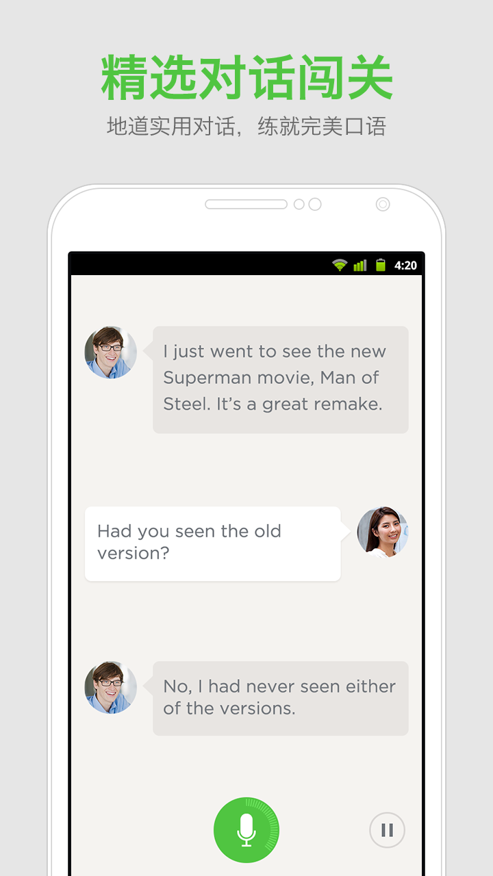 精选跟发音匹配的地道对话,让你在练习发音的同时搞定对话,提高学习效率。