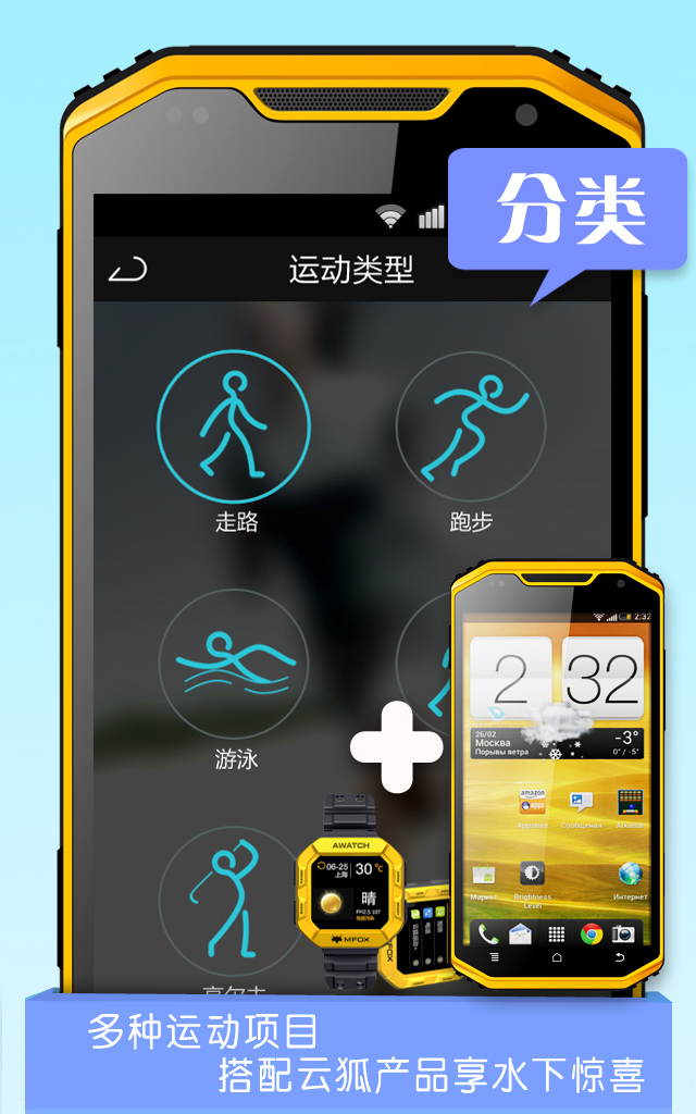 5、在这里你可以设置多种运动项目,如果搭配云狐手机的还可以分享水下运动的惊喜!